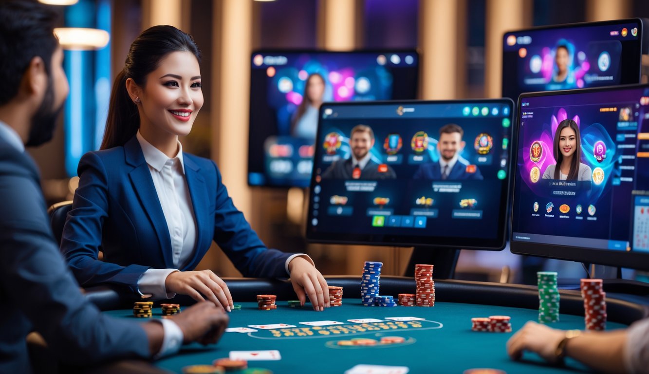 Bermain poker online dengan dealer langsung membawa pengalaman yang lebih nyata dan seru. Fitur interaktif memungkinkan pemain berkomunikasi langsung dengan dealer dan pemain lain, membuat suasana lebih hidup seperti di kasino sungguhan.
